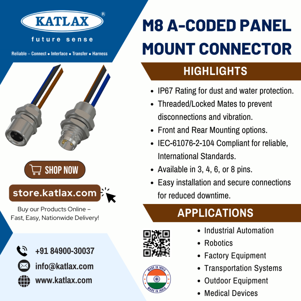 Discover Katlax’s high-performance M8 A-Coded Panel Mount Connector, designed for secure and durable connections in industrial applications.