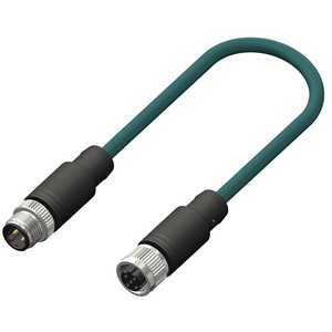 Dual Connector M12 Female D-Coded, Straight , 4 Pin To Male Straight 4 Pin With 2m Teal Cat 5e Pur S