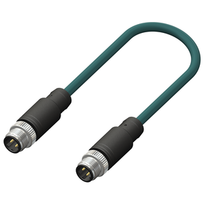 Dual Connector M12 Male D-Coded, Straight , 4 Pin To Male Straight 4 Pin With 2m Teal Cat 5e Pur Shi
